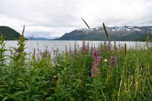 Es geht ständig hin und her. Die Arme der Fjorde scheinen ellenlang. Die Strasse windet sich kurvenreich entlang des Ufers, verschwindet urplötzlich in einem Tunnel, steigt ein paar hundert Höhen-Meter an um dann gleich wieder auf das Meeresniveau abzufallen.