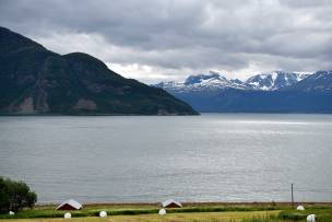 Der Weg nach Tromsø scheint mit 435 Kilometer nicht allzu lang. Die Fahrzeit von über 7 Stunden einschliesslich zweier Fährstrecken lässt aber trotzdem einen langen Tag erwarten.